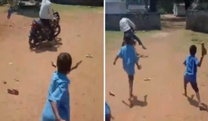 दयाराम ने बताया कि जांच रिपोर्ट के आधार पर मामले में आगे की कार्रवाई की जाएगी। सोशल मीडिया पर वायरल वीडियो में स्कूल वर्दी पहने कुछ बच्चे मोटरसाइकिल चालू कर रहे एक व्यक्ति पर जूते-चप्पल फेंक रहे हैं। बाद में वह व्यक्ति मोटरसाइकिल से मौके से भाग गया।