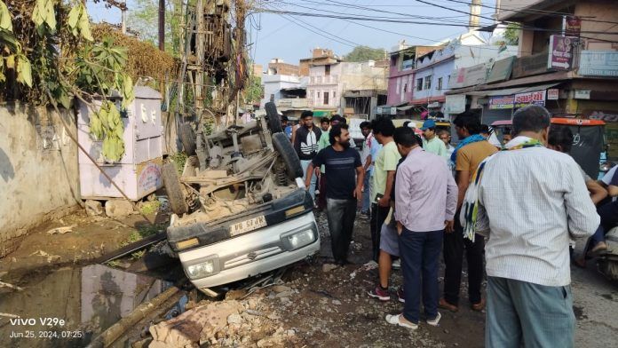 सागर में स्कूली बच्चों को ले जा रही मारुति वेन नाले में जा पलटी