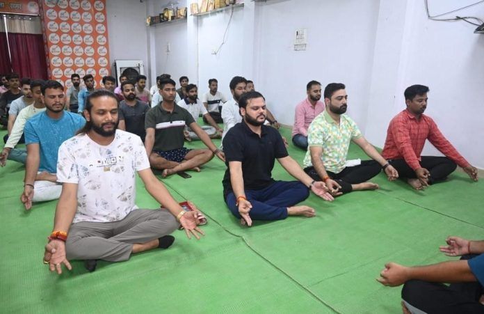 अंतराष्ट्रीय योग दिवस के उपलक्ष्य में भारतीय जनता युवा मोर्चा कार्यालय में किया गया योगाभ्यास