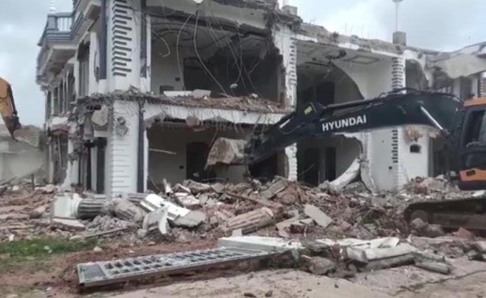 गुरुवार की सुबह पूर्व सदर शहजाद हाजी के आलीशान मकान पर प्रशासन का बुलडोजर पहुंचा और भवन को तोड़ना शुरू कर दिया है। इस मौके पर प्रशासन पुलिस के अधिकारी मौजूद हैं। पूरे शहर में कड़ी सुरक्षा व्यवस्था की गई है।
