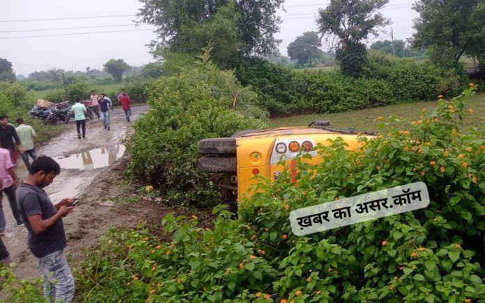 सागर के कॉलेज की बस अनियंत्रित होकर पलटी, 4 छात्र घायल