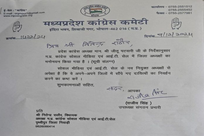 MP: कांग्रेस कमेटी सोशल मीडिया विभाग के सभी नवनियुक्त जिला अध्यक्षों एवं जिला समन्वयकों की सूची जारी