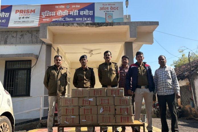 सागर पुलिस ने कार से बरामद की अवैध 15 पेटी शराब