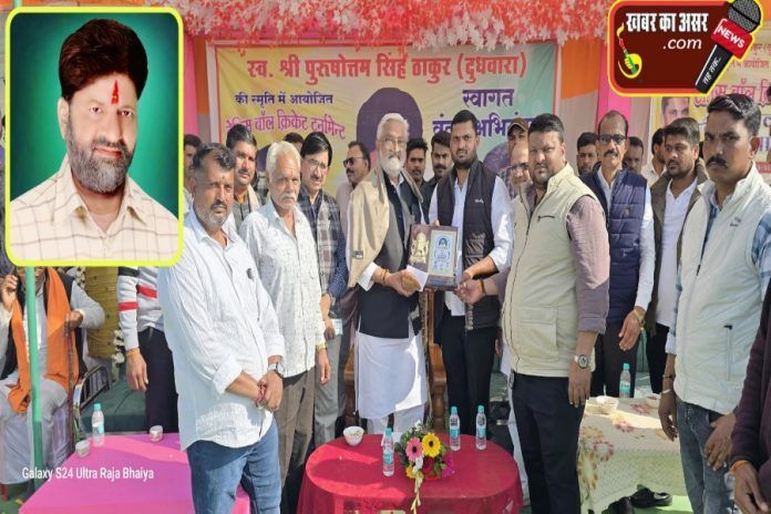 सागर। केसली में पिछले वर्ष की तरह इस वर्ष भी केसली नगर में स्थित पंडित सुखराम दुबे स्टेडियम में स्वर्गीय श्री पुरुषोत्तम सिंह ठाकुर दुधवारा की स्मृति में टेनिस बॉल क्रिकेट टूर्नामेंट का शुभारंभ क्षेत्रीय विधायक बृजबिहारी पटेरिया ने ट्रास फेंकते हुए जोरदार बल्लेबाजी कर शुभारंभ किया सर्वप्रथम ग्राम दुधवारा की टीम ने बल्लेबाजी करने का निर्णय लिया सौरभ सिंह राजपूत दुधवारा मण्डल अध्यक्ष युवा मोर्चा