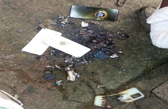 संजय चौबे के पुत्र प्रदूम्य चौबे जो मोबाइल चला रहे थे तो मोबाइल चलाते समय उसमें से धुंआ निकलने लगा तो उसने छत पर से मोबाइल खेत में फेंक दिया देखते ही देखते मोबाइल से ब्लास्ट हो गया बाल बाल बचा बचा।