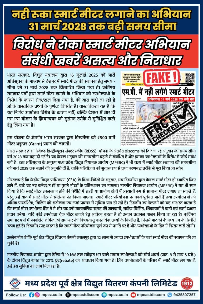 विरोध ने रोका स्‍मार्ट मीटर अभियान संबंधी खबरें असत्‍य और निराधार