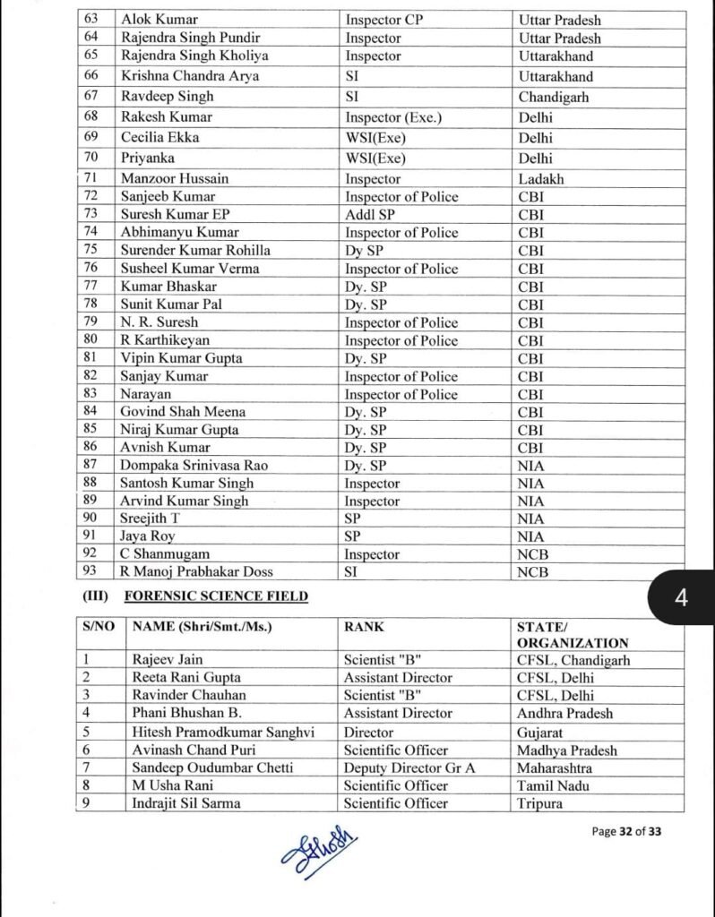 अन्वेषण (Investigation) के क्षेत्र में उत्कृष्ट प्रदर्शन हेतु मध्यप्रदेश पुलिस के चार पुलिस अधिकारियों को “केंद्रीय गृह मंत्री दक्षता पदक” से सम्मानित किया गया है।