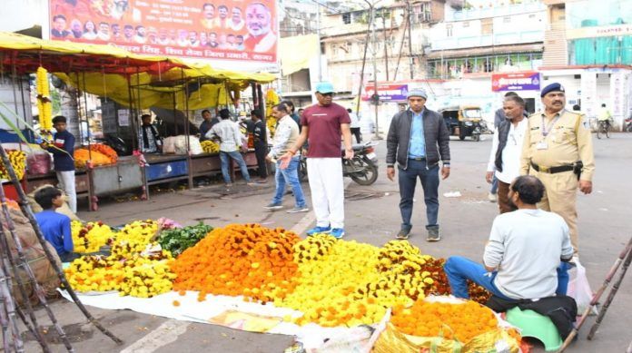 निगमायुक्त ने दुकानदार व्यापारियों को रोड पर अतिक्रमण न करते हुए पीली लाईन के अंदर व्यवस्थित व्यापार करने की हिदायत दी