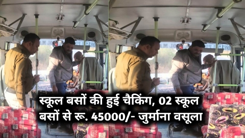 स्कूल बसों की चैकिंग संबंधी कार्यवाही : 02 स्कूल बसों से रू. 45000/- जुर्माना वसूला