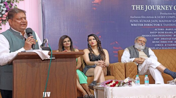 ताकि इससे पर्यटन उद्योग को बढ़ावा मिलेगा औरलोगों को व्यापार और काम मिलेगा सरकार को भी टैक्स के रूप में काफी राशि मिलेगी उन्होंने शुभकामनाएं देते हुए सभी कलाकारों को  और सुनील जैन को कहा कि हम सब आशा करते हैं कि किसी दिन आपका भी नाम उसी प्रकार हो जिस प्रकार मुंबई के फ़िल्म  निर्माताओ का हुआ है। श्री ताहिर हुसैन ने फिल्म  में अपनी भूमिका की जानकारी दी श्री राहुल सिंह ने फिल्म में कलाकारों के बारे में बताया इस फिल्म के निर्माता सुनील जैन ने कहां की हमने बड़े विश्वास के साथ ऐसा अभियान को शुरू किया है इसके निर्देशक कलाकार प्रसिद्ध व्यक्तित्व हैं सागर के लोगों का हमें आशीर्वाद चाहिए ताकि सागर का नाम जो अभी तक अभिनय के क्षेत्र में तो था अब फिल्म निर्माण के क्षेत्र में भी कीर्तिमान स्थापित कर सके संचालन राजेश पंडित ने किया और आभार श्रीमती निधि सुनील जैन ने माना फिल्म के हीरो ने सभी साथी कलाकारों का विस्तार से परिचय कराया