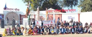 सागर। मध्य प्रदेश कांग्रेस कमेटी के आह्वान पर सागर में जिला शहर कांग्रेस अध्यक्ष महेश जाटव की नेतृत्व में संविधान चौक पर धरना दिया गया