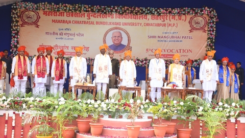 सागर। राज्यपाल मंगुभाई पटेल शुक्रवार को वसंत पंचमी के अवसर पर महाराजा छत्रसाल बुंदेलखंड विश्वविद्यालय छतरपुर के पांचवे दीक्षांत समारोह में शामिल हुए। जहां राज्यपाल श्री पटेल को गार्ड ऑफ ऑनर दिया गया। राज्यपाल ने समारोह में 19 विद्यार्थियों को पीएचडी, 46 विद्यार्थियों को स्वर्ण पदक और लगभग 200 विद्यार्थियों को उपाधियां प्रदान की। राज्यपाल ने दीक्षांत समारोह को संबोधित करते हुए कहा कि विद्यार्थी जीवन में नए अवसरों को प्राप्त करने और नई चुनौतियों के समाधान खोजने में अपने ज्ञान और कौशल को निरंतर निखारते रहें। उन्होंने कहा कि विद्यार्थियों को मिली उपाधियां सिर्फ कागज का प्रमाण पत्र नहीं बल्कि जिम्मेदारियों का आमंत्रण पत्र है। उन्होनें विद्यार्थियों से अपील करते हुए कहा कि विद्यार्थी अपने ज्ञान, कौशल, शोध, नवाचार से देश को निरंतर आगे बढ़ाते रहें।