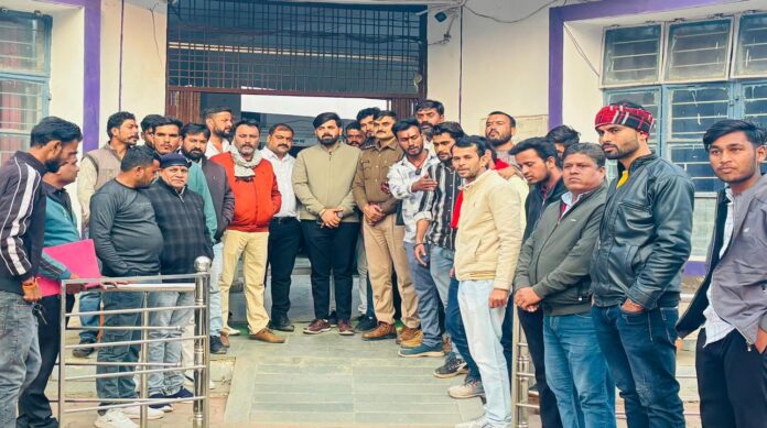 करणी सेना ने रहली थाना परिसर में की नारेबाजी, लंबित मामलें में ठोस कार्रवाई की मांग उठाई