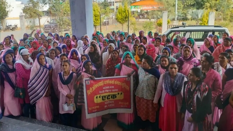 आंगनबाड़ी कार्यकर्ताओं का जोरदार प्रदर्शन