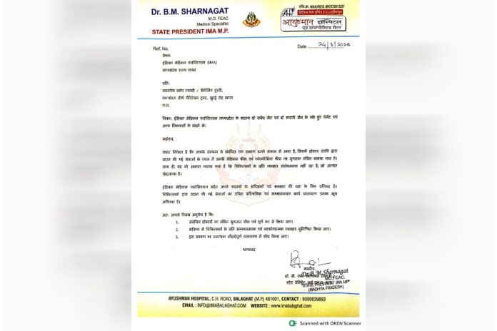 आईएमए मध्य प्रदेश के स्टेट प्रेसिडेंट डॉ. बी.एम. शरणागत द्वारा जारी इस पत्र में डॉक्टर दंपत्ति के अधिकारों के संरक्षण की मांग की गई है।
