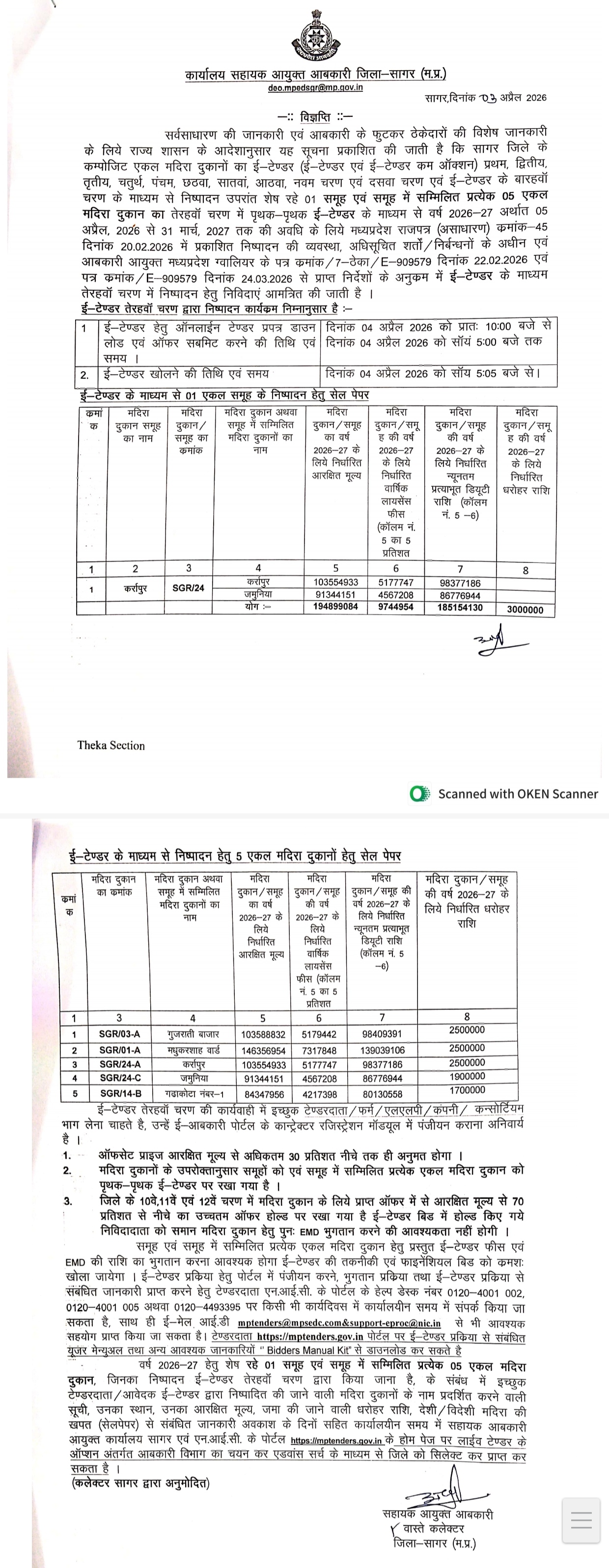 सागर आबकारी विभाग की कार्यप्रणाली का असर, खाली पड़ी 5 शराब दुकानों का 13वां ई टेंडर जारी